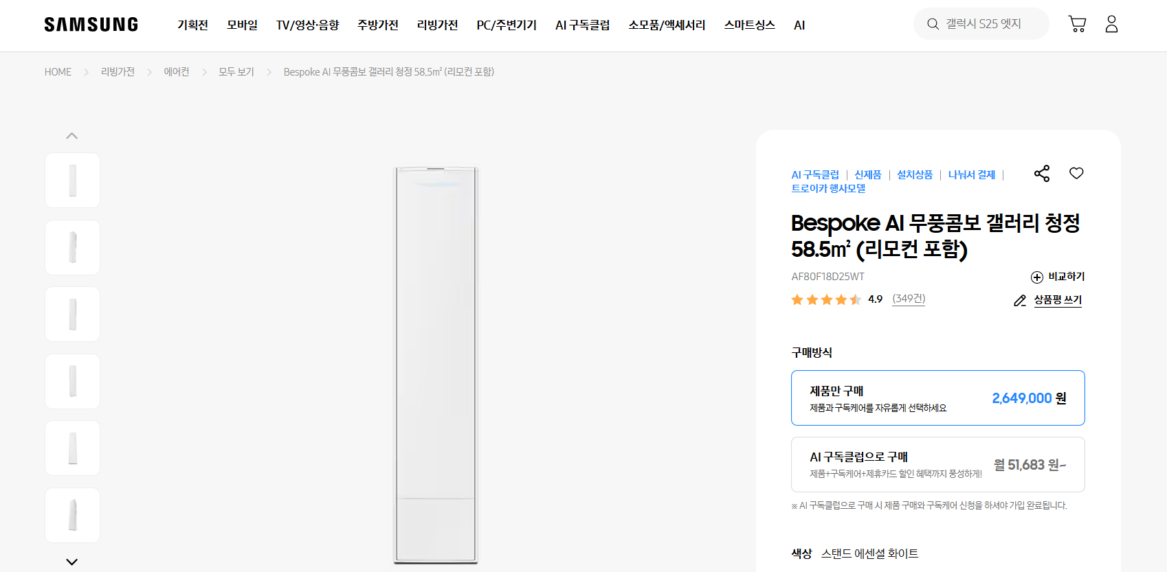 | 삼성 | 무풍에어컨 갤러리 | 무풍냉방, AI 절전, 스마트싱스 연동 | 220만 ~ 330만 원 |