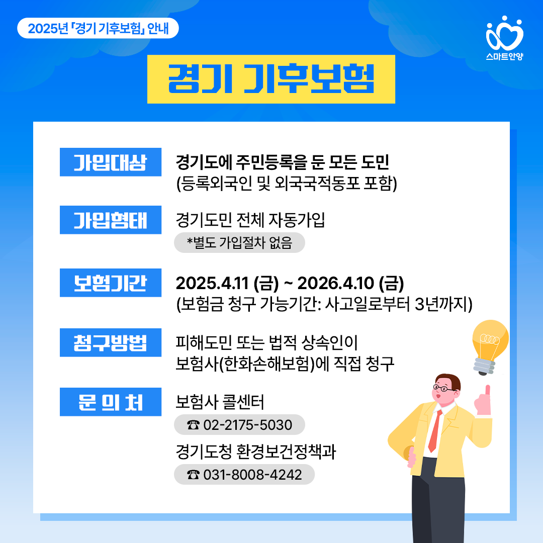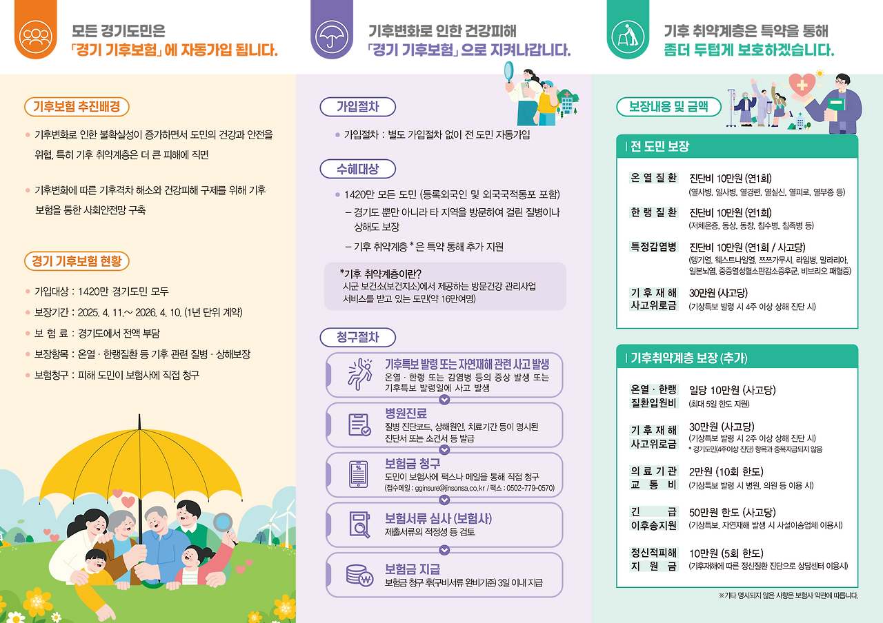 하지만 ‘경기 기후보험’ 덕분에 경기도민이라면 자동으로 보험 혜택을 받을 수 있는 든든한 보호망을 갖게 되었죠.