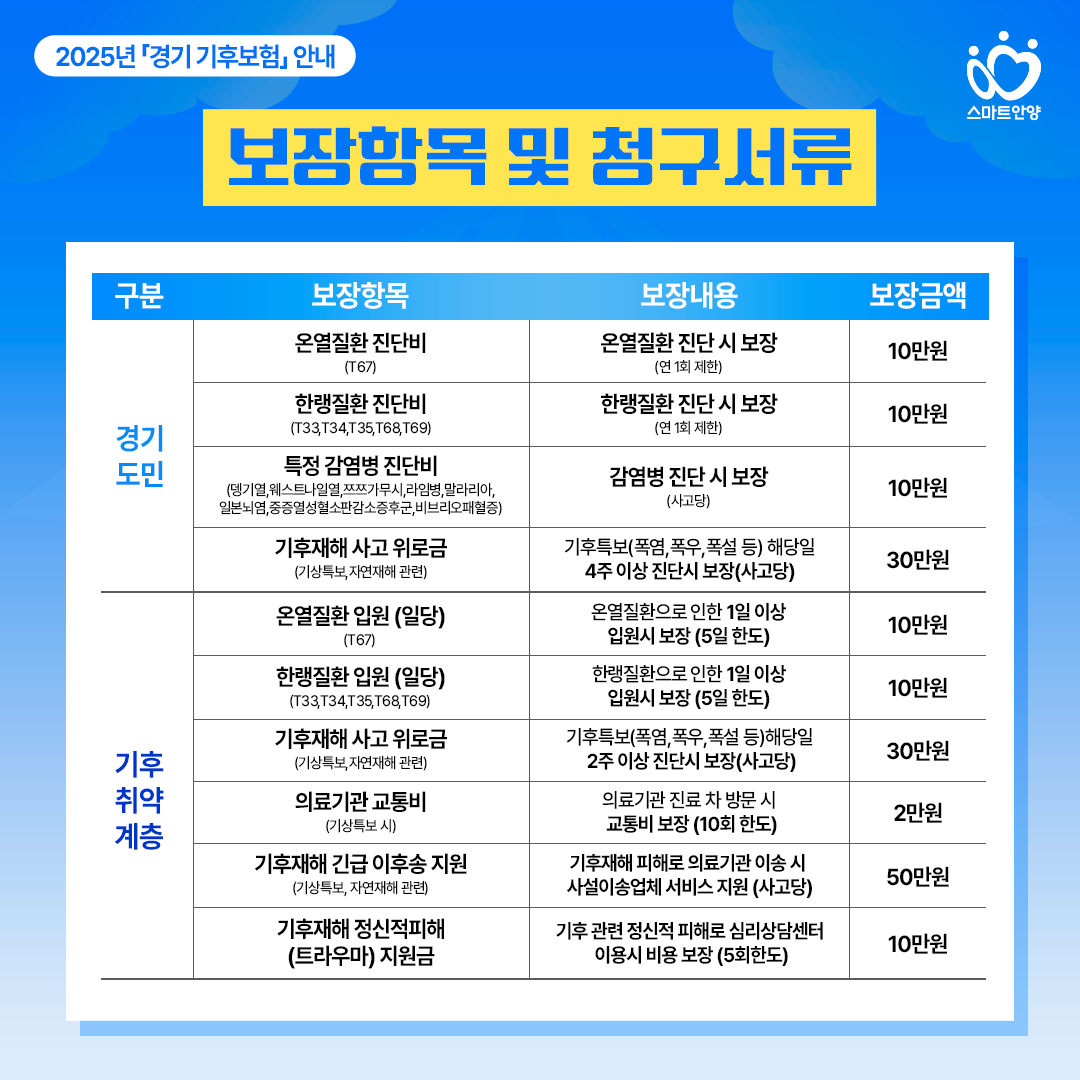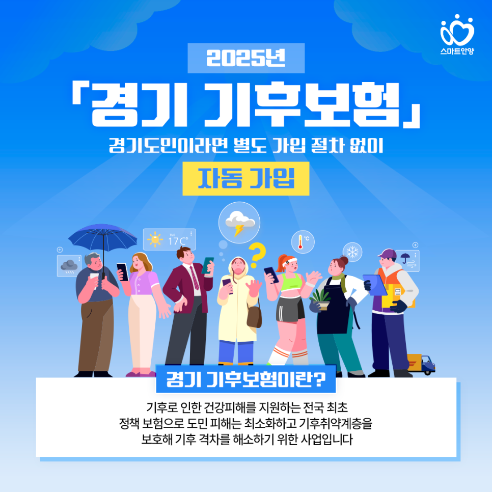 하지만 다행히도 경기도에 거주하는 주민이라면 누구나 별도 절차 없이 자동으로 가입되는 ‘경기 기후보험’이 시행 중이라는 사실, 알고 계셨나요?