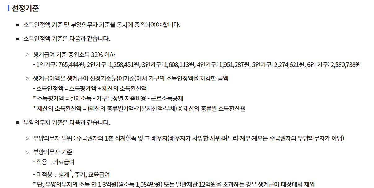 2025년 생계급여는 아래 조건에 해당하면 신청 가능합니다.