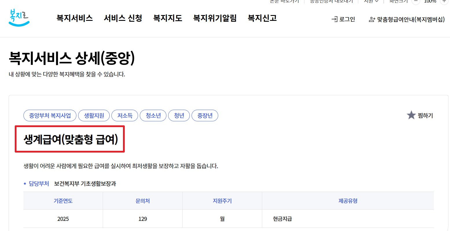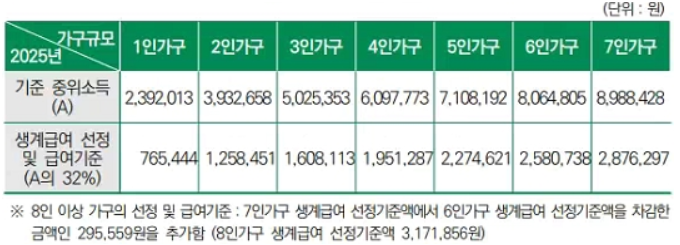 💰 2025년 생계급여 지급 금액