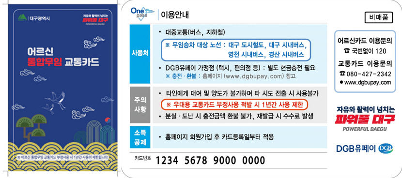 - 어르신카드 이용 문의: ☎ 053-120