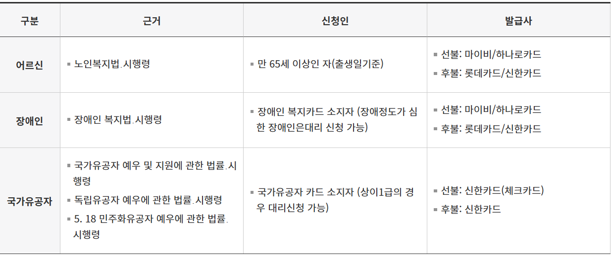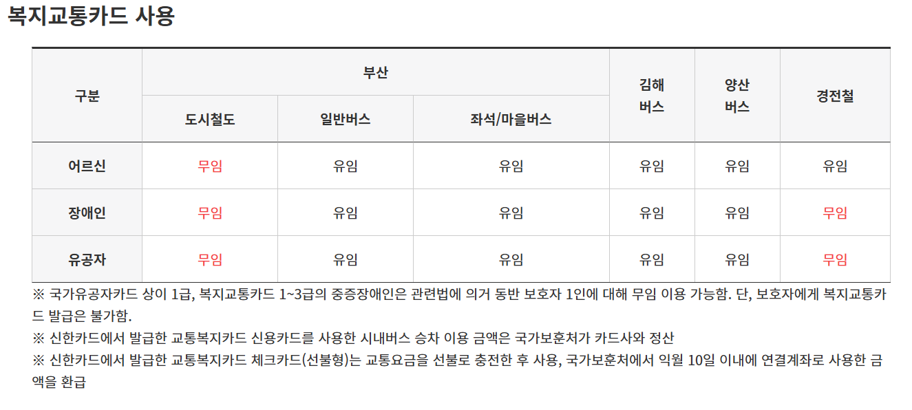 ※ 국가유공자는 부산지방보훈청에서 전국 호환 교통복지카드를 발급