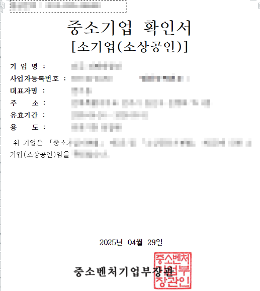 - 중소기업확인서 발급이 가능한 소상공인 (상시 근로자 5인 미만)