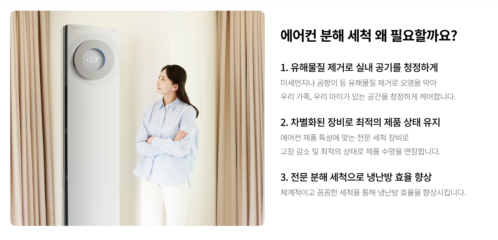 - 전문적인 분해 세척 기술: 에어컨의 구조를 잘 아는 전문가가 직접 분해하여 세척합니다.