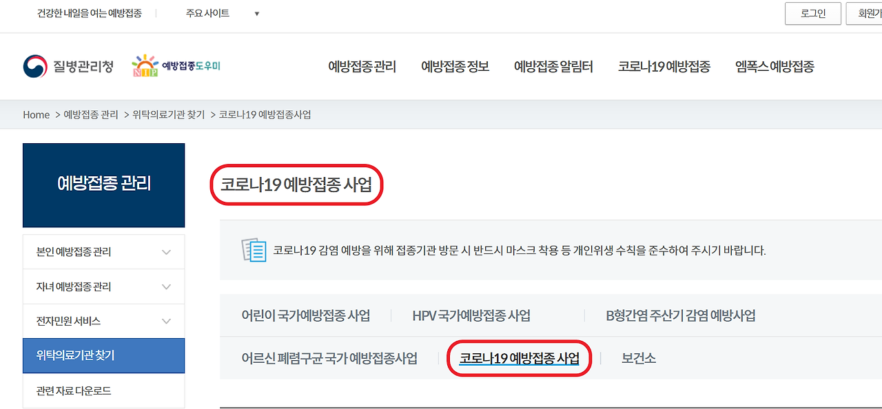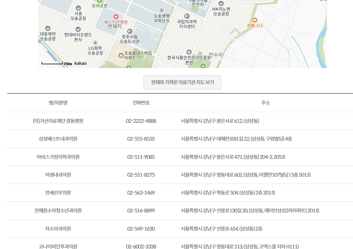 - 질병관리청 예방접종도우미 사이트에서 가까운 기관 검색 가능