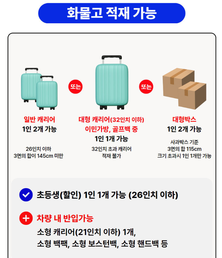 - 기내 반입 짐 외에도 수하물 보관 가능합니다.